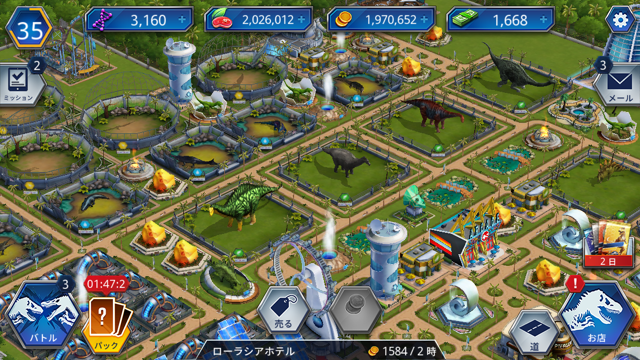 パークの建設や恐竜の復元をしながらパークを大きくしていくというゲームなんですが。